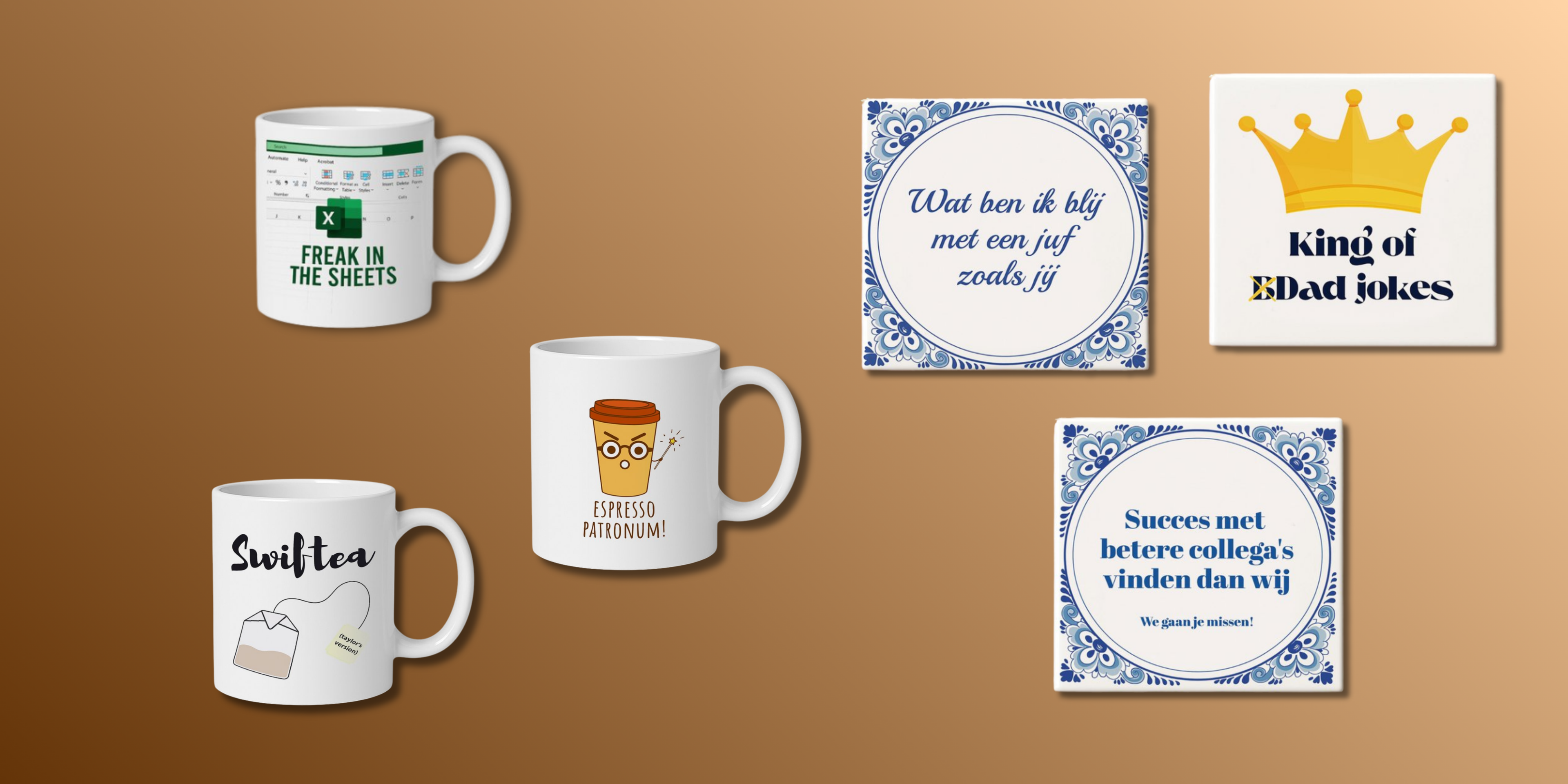 Maak iets unieks! Ontwerp zelf je mok of tegel met je eigen foto, tekst of logo. Perfect als cadeau of voor jezelf — start direct met ontwerpen!